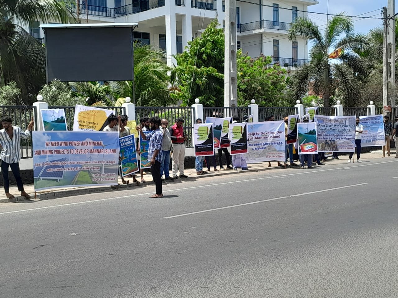 மன்னார் காற்றாலை மின் திட்டத்தைத் தொடரக் கோரி போராட்டம்!