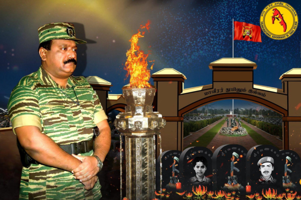 நமது மாவீரர்கள் சிந்திய குருதி இன்றும் நம் மண்ணைப் பாதுகாத்து நிற்கின்றது. தமிழீழ மக்களை, தமிழீழ மக்களின் தேசியப் பிரச்சனையை அங்கீகரித்து தீர்வு காண்பதற்கு பதிலாக, தமிழ் மக்களுடைய அடையாளத்தை அழித்து, அவர்களின் தேசிய தகமையைத் தகர்த்து இனக் கபளீகரம் செய்து விடலாம் என்று சிங்கள அரசு போடும் திட்டங்களை எல்லாம் முறியடிக்கும் ஆற்றலை மாவீரர்கள் சிந்திய குருதி எமது மக்களுக்கு வழங்கி இருக்கிறது