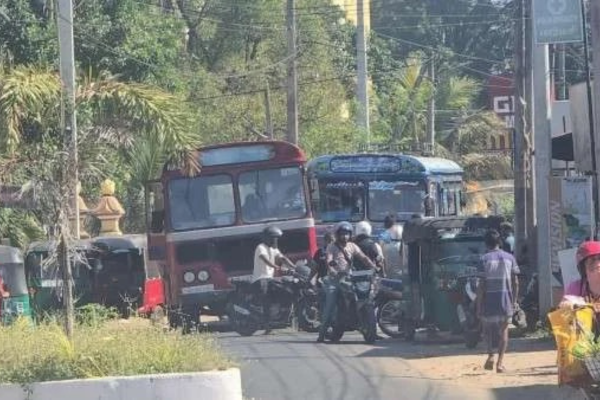 காரைநகரில் இருந்து யாழ்ப்பாணம் நோக்கிப் பயணித்த இலங்கை போக்குவரத்துச் சபைக்குச் சொந்தமான பேருந்தும், தனியார் பேருந்தும் போட்டி போட்டுக்கொண்டு முந்திச் செல்ல முயன்றபோது ஏற்பட்ட விபத்தினால் போக்குவரத்து பாதிப்பு ஏற்பட்டுள்ளது.